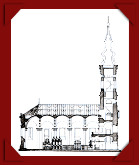 (дужине 10 метара и ширине 19,6 метара) испод које је крипта, са склопом масовних зидова, стубаца и сводова, на које се ослања конструкција звоника.