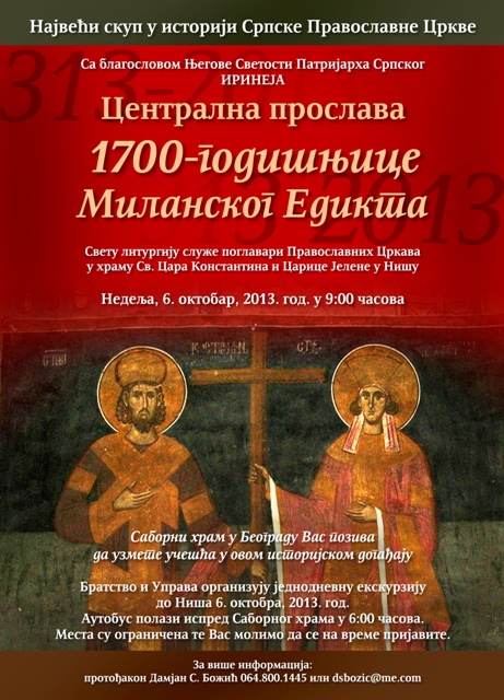 Home / Новости / Новости / Прослава 1700.година Миланског едиктаНовостиПрослава 1700.година Миланског едиктаоктобар 25, 2013 Share this ArticlePrevious ArticleМолебан за почетак школске годинеNext ArticleПрослава 200. годишњице рођења Његошаadmin Related Posts Васкршња посланица СПЦ 2023. мај 18, 2023 Канон Светом Нектарију и српским светитељима мај 18, 2023 Јелеосвећење на Велику среду април 25, 2023 Ostavite komentar Одустани од одговораВаша адреса е-поште неће бити објављена. Неопходна поља су означена *KomentarИме * Е-пошта * Веб место Сачувај моје име, е-пошту и веб место у овом прегледачу веба за следећи пут када коментаришем.